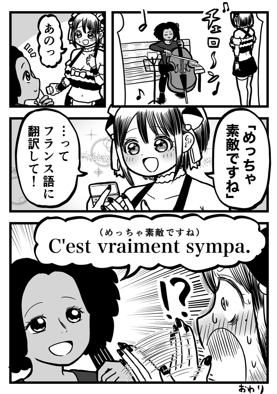 2022年07月13日 ウソ絵日記「フランス語に翻訳して」 ↓前の記事↓ メルシー↓次の記事↓ ↓LINEで更新通知を受け取れます↓ 「日記」カテゴリの最新記事 < 前の記事次の記事 > コメント コメントフォーム 名前 コメント 記事の評価 リセット リセット 顔 星 情報を記憶 コメントを投稿する